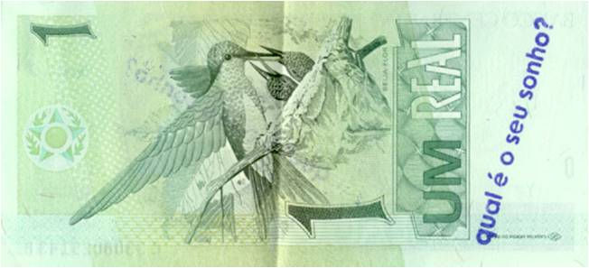 Ação pensada como intervenção no cotidiano através de carimbos sobre cédulas de pequeno valor. Foi realizada no Brasil e na Espanha entre 2001 e 2007